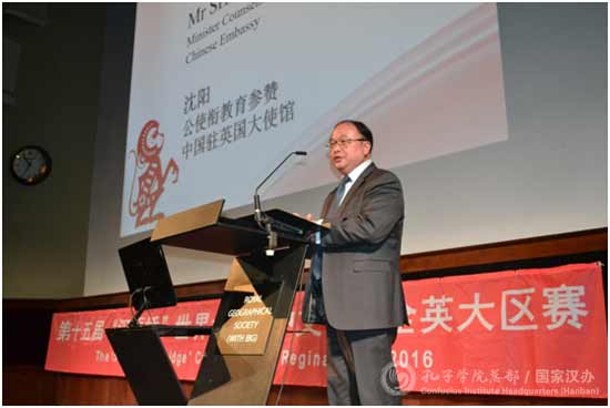 受孔子学院总部/国家汉办委托,由驻英使馆教育处主办、汉办英国代表处承办的第十五届“汉语桥”世界大学生中文比赛全英大区赛决赛于3月19日在英 国皇家地理学会隆重举行。驻英使馆公使衔教育参赞沈阳代表驻英使馆致辞并宣布比赛正式开始。英国商业创新与技能部、英国高校、在英中资企业代表以及广大的 汉语学习爱好者近500人出席并观摩了比赛活动。