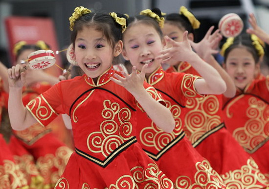 Children perform a traditional Chinese dance during the opening ceremony of the 13th Beijing International Tourism Festival at Qianmen Commercial Street in Beijing September 17, 2011.