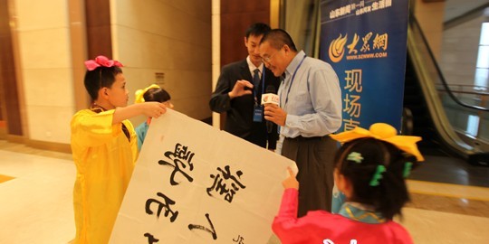 "Confucius is one of the greatest educators in the world, as an admirer of Confucius, I am very proud to receive the UNESCO Confucius Prize!" said Ms. Maria Aurora Carrillo Gullo excitedly. Much to her happiness, once setting foot on the land of the hometown of Confucius, she received such a precious calligraphy of sayings of Confucius, and she was very grateful to the three "little Confucius" from Shandong.