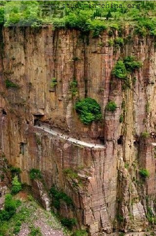 BEIJING, May 17 -- Years ago, local villagers could only descend the village’s mountain on a dangerous path. They tunneled a road through the mountain and named it Guoliang Cave, which was composed of exposed red shale. Guoliang Village is now an attractive spot because of its unique scenery and stone buildings.