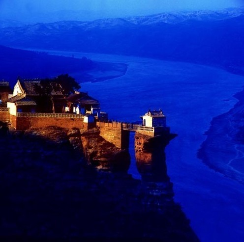 The temple, which lies on the banks of the Yellow River in Jiaxian, Shaanxi Province, is supported by a stone column that is more than 20 meters high. It is indeed a marvel.