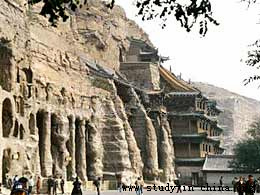 The Longmen Grottoes, located near Luoyang, Henan Province, are a treasure house of ancient Buddhist cave art. The grottos were hewed and carved during the Northern Wei Dynasty (386-534), when the rulers relocated their capital at Luoyang near the end of the 5th century. At that time Buddhism was spreading east into China and was venerated by the imperial court. The Buddhists adopted the practice of carving rock temples, dedicated to the Buddha.