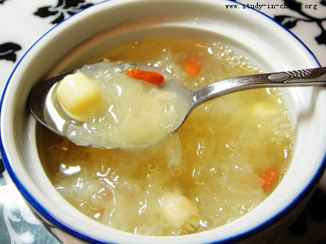 White fungus is often made into thick soup as a dessert. Adding white fungus to congee or other dishes is also recommended.