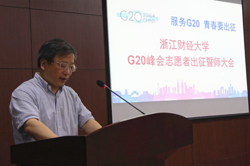 The representative of the volunteers for G20 also made a speech to appeal the volunteer to consider the service for G20 as the only mission, and then spare no effort and time to serve all the work in the rules, so as to show the splendor of the Zhejiang university of Finance and Economics.
