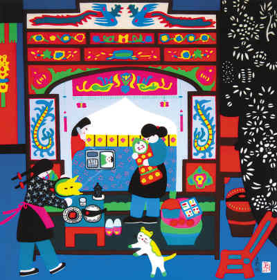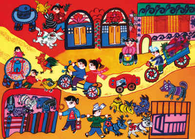 농민화(農民畵)에서 변화발전해 온 현대 민간회화는 올해 중국 개혁개방 30주년을 맞아 그 휘황한 성과와 생기를 더욱 아름답게 빛뿌리고 있다.