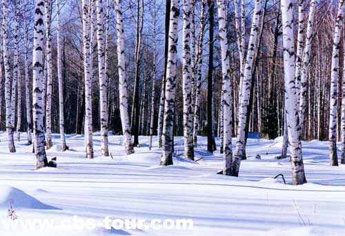 "걸음마다 다른 경관"이라는 말이 정말 맞았다. 서리꽃의 경관이 아직 가셔지지 않았는데 자작나무숲이 흰 빛을 번쩍이며 다가왔다. 전하는데 의하면 이 자작나무숲은 해발
