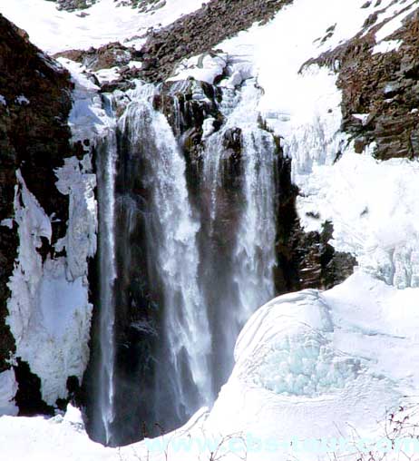 시냇물을 지나니 개활지가 나타났다. 이제 멀지 않으면 장백산 폭포를 볼수 있을것이라고 마음을 위안하는데 눈보라가 앞을 가려 이제 얼마를 더 가야 할지 도무지 보이지 않았다. 지성이면 감천이라고 얼마 지나지 않아 장백산 폭포가 우리의 앞에 모습을 드러냈다. 위에는 창망한 하늘이 걸려 있고 주변에는 온통 흰 눈이 덮여 있는데 은색의 갑옷을 입은 용사가 절벽에서 혹한과 싸움이라도 하듯 장백산 폭포는 양쪽에 옥색의 얼음기둥을 만들며 변함없이 절벽을 뛰어내리고 있었다.