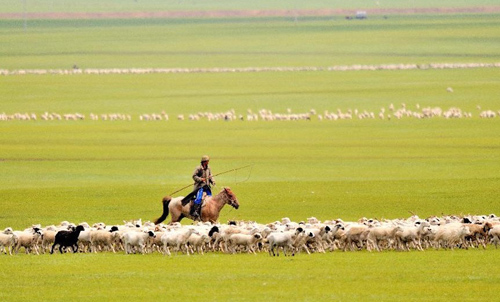 Photo taken on July 23, 2012 shows a sunset glow over New Barag Left Banner Grassland, North China's Inner Mongolia Autonomous Region. With a beautiful scenery, New Barag Left Banner Grassland attracts a large amount of visitors in summer.