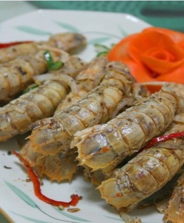 Deep fried mantis shrimp with garlic and chili peppers