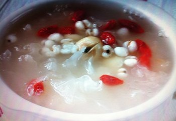 Practice: the rice gruel cooked. Can put sugar (boiled diabetes can also put). Tremella. In lukewarm water Lotus cooked to heart. Then put tremella jujube, lotus seed, and open