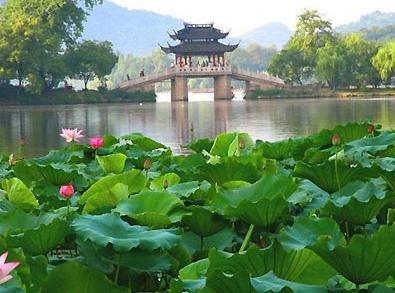 Hangzhou is one of China's big tourist attractions. It has many historical relics and scenic spots, including West Lake, and the scenic area near the Fuchun River and the Xinan River. The special local-made products are silk, Xihu silk umbrellas, color-glazed porcelain, Longjing tea, and white chrysanthemum.