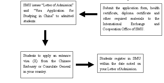 • * 学生は規定された期日に、「入学許可書」、「外国留学生入国のビザ申請書」(JW202表)、「外国人体格検査記録」の正本と申請用の写真8枚(サイズ:35mm*50mm)を本校に持って来て、登録の手続きを済ませ、関係の費用を納付すべきである。