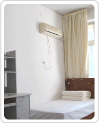 학교호텔 | 일인방 | 50-70 | 단독화장실, 공중부엌, 텔레 비전, 전화, 에어컨, 냉장고,인터넷접속가능, 샤워, 옷 세탁실(공중용) |