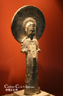 As its name “Returned Bodhisattva?suggests, the over-one-meter-high goddess made during Northern Wei and Eastern Wei (386-550) has experienced twists and turns ever since its discovery back in 1976 in Boxing, Shandong Province. It was stolen in 1994 and brought back to China in January 2008. During the 14 years away from homeland, the sculpture once showed up in Britain and later was purchased by Japanese MIHO which exhibited it to the public in 2000.