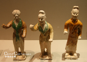 Six naked pottery figurines returned from the United States were also among the exhibits. Made in the Western Han dynasty (206 BC-24 AD), they were illegally unearthed in 2001 in the eastern outskirts of Xi’an, Shaanxi Province, and then sold overseas. One year later, the U.S. Customs detained and sealed up the six figurines before they were going to be auctioned off by American Sotheby's. In June 2003, the lost relics finally returned home safely. Archeological research shows that these pottery figurines had wooden arms and were clad with fineries when buried two thousand years ago.