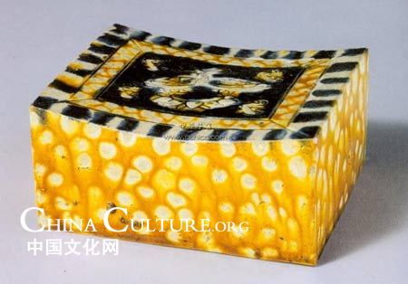 Three colors double lions flower porcelain pillow, Song Dynasty, preserved at Yunnan Province Museums |