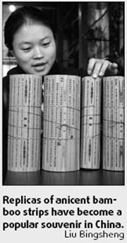 BEIJING, Oct. 30 -- Bamboo strips were used widely for writing during the Warring States Period (475-221 BC), although some experts say the first scrolls of bamboo appeared in the Western Zhou Dynasty (11th century-771 BC). Paper finally replaced bamboo as the primary writing material around the 2nd century. It was a finding in Xi'an, Shaanxi province that shed light on how bamboo strips had been used 2,200 years ago.