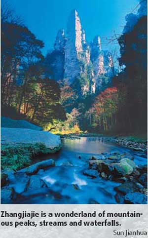 My group stayed for five of the seven nights at the Xiangdian resort, 30 km from the city center but next to the country's first National Forest Park, a 7,000-sq-km wonderland of mountainous peaks up to 400 m high, streams, waterfalls and even naturally formed bridges. Well-informed tourists have been coming here ever since it was listed by UNESCO as a World Natural Heritage site in 1992.